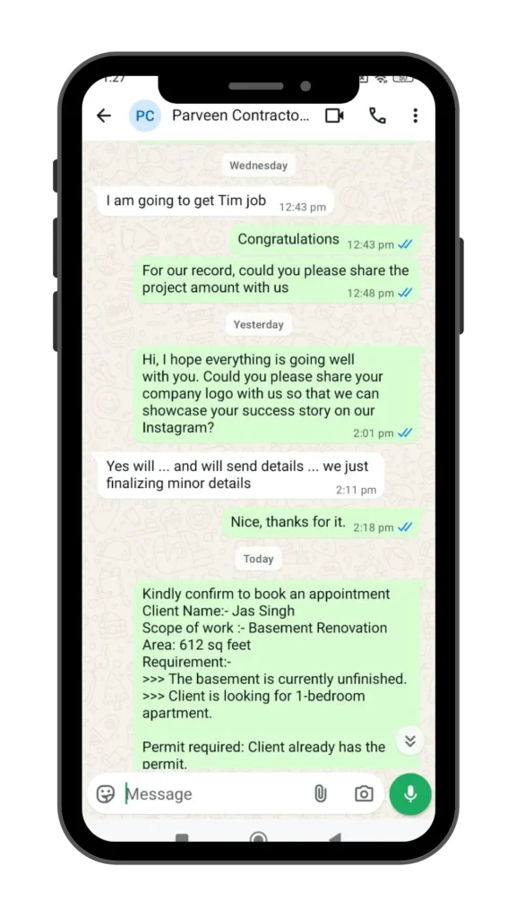 Our support team also helped Parveen with strategic follow-ups and client communication, increasing his close rate on high-ticket projects.